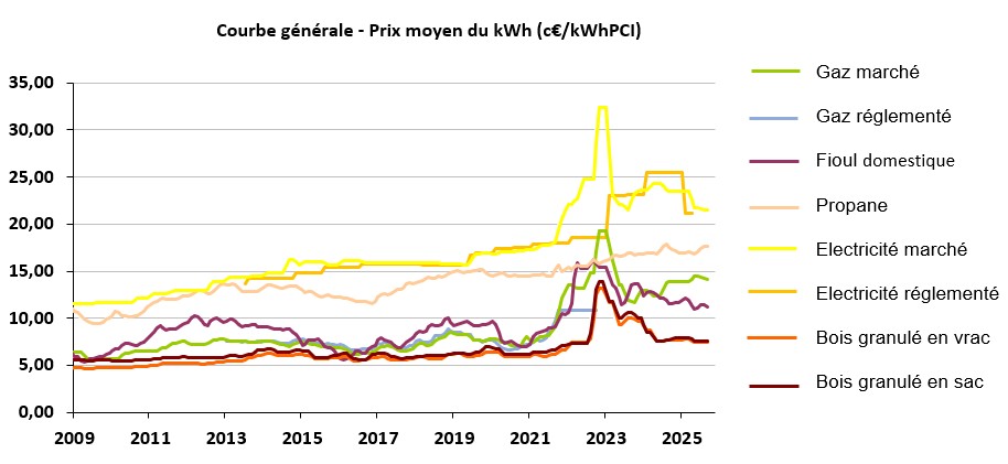 Retrouvez ci-dessous les prix du kWh et l’évolution des prix de l’énergie. Les données ont été actualisées en septembre 2025